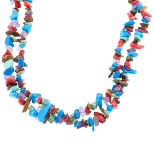 Amazon.com Collection T341915MUL, Dream about the bright and colorful summer days when wearing the Sterling Silver Multiple Genuine Stone Chip Double Strand Necklace. Layer on 18 inches of beaded amethyst, tiger's eye and turquoise on sterling silver. The two strands splash a cool sensation of bright tones in various organic shapes onto your day's ensemble. Sweeping across your neckline, this beaded piece adds a boost of color to your favorite neutral-toned tops.