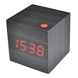 Neewer WT LED BLACK WOOD USB CUBE ALARM CLOCK, Modern LED Wood Wooden USB/AAA Cube Alarm Clock