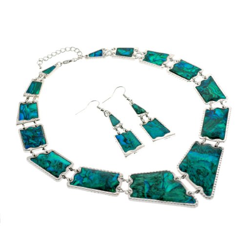 Here are some of the great features of Green Abalone Inlay Necklace and Earrings Set in Square Style - 2.5'' Earrings, 16-18'' Adjustable Necklace